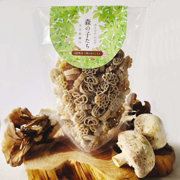 きのこの形のショートパスタ、「森の子たち」は、きのこの栽培が盛んな最上地方(山形県北部)の生産者団体「Professional きのこ山形」さんとの共同開発です。